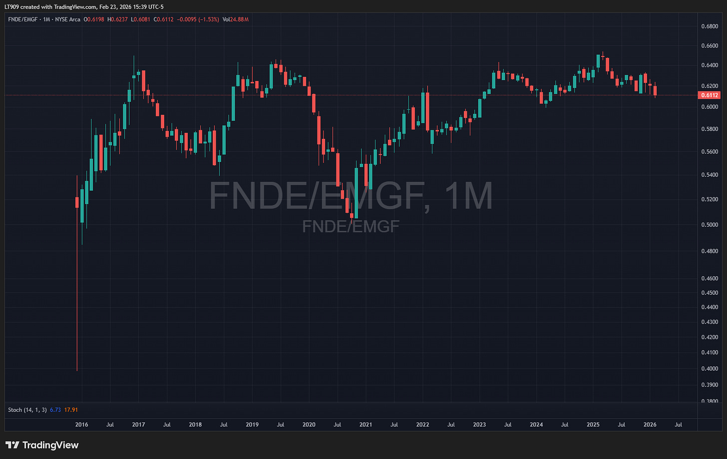 For an EM growth cycle though, FNDE owns the exact type of firms that are driving emerging market undervaluation such that it exists.