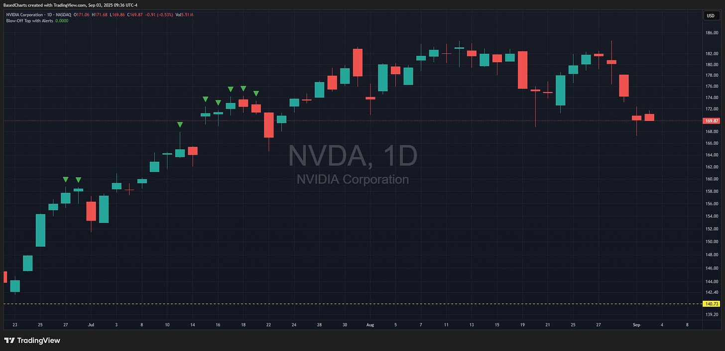 At the moment the NQ is moving lower such that Google + Apple are more than 100 percent of the NQ gain. Nvidia is still rolling over at the open. I do not own a crystal ball, but if Nvidia takes out its low, the measured target is $150 or a 12 percent drop from here.