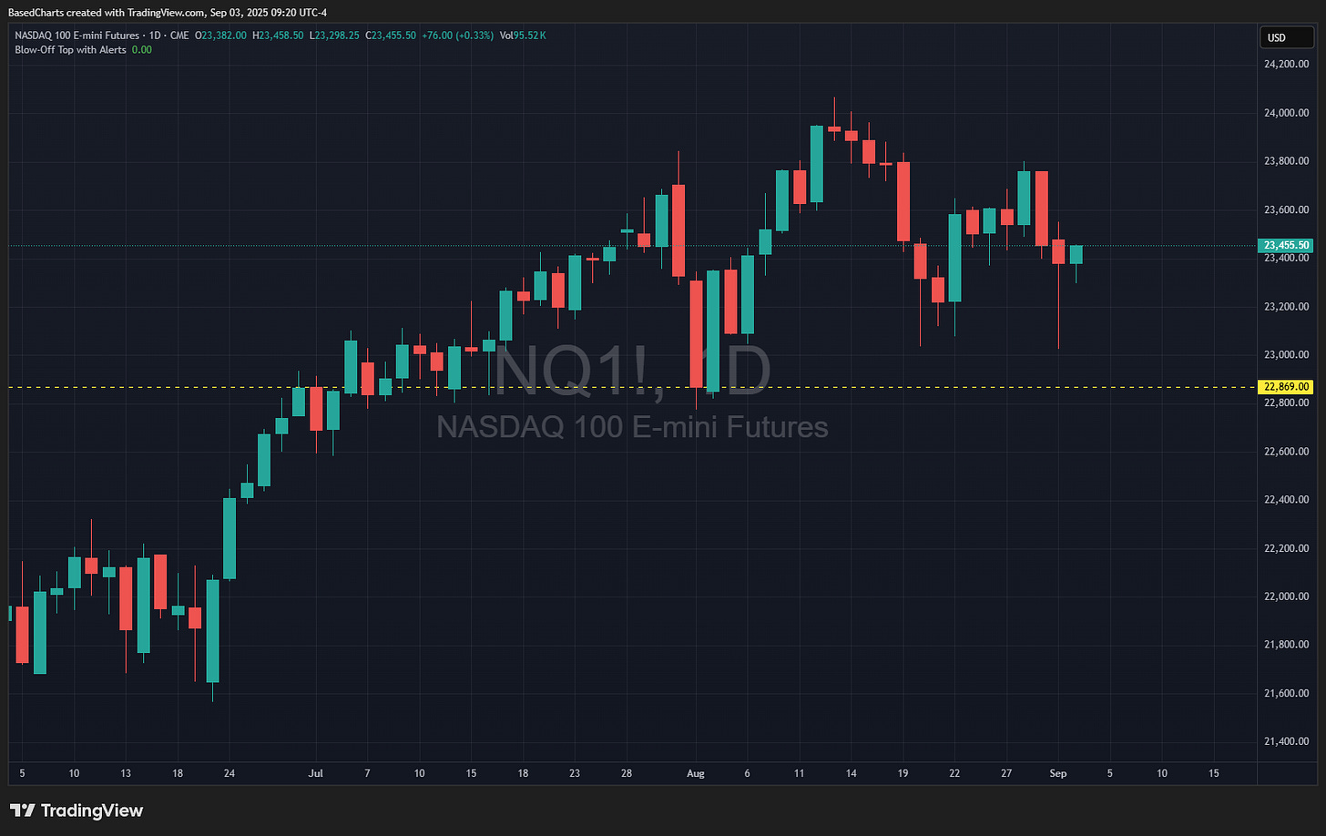 At this moment, these two are still up. My math says these two stocks are currently (by pre-market price) adding about 68 bps to NDX. As I’m typing this, NQ is up 72 bps about 20 minutes ahead of the opening bell.