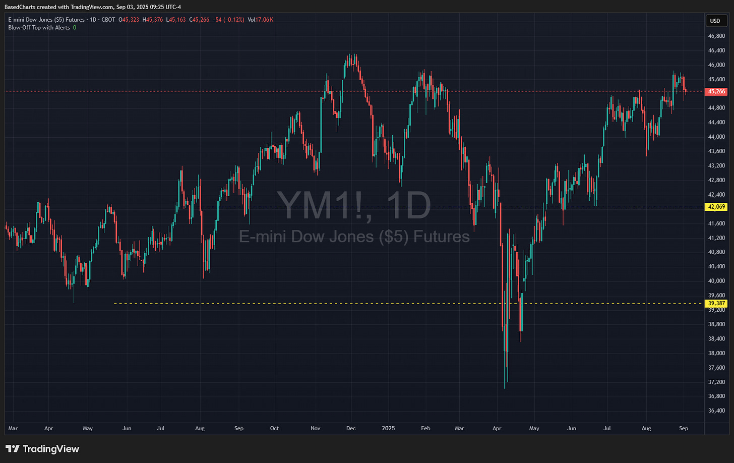 DJIA futures remain below the December high.