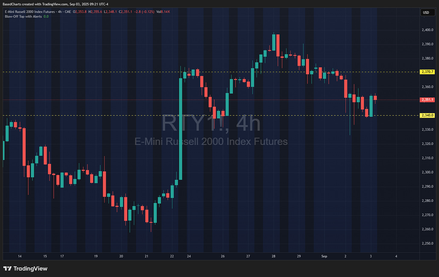 The Russell 2000 futures also bounced at a key support area. Bears have pierced the line at times, but failed to hold it.