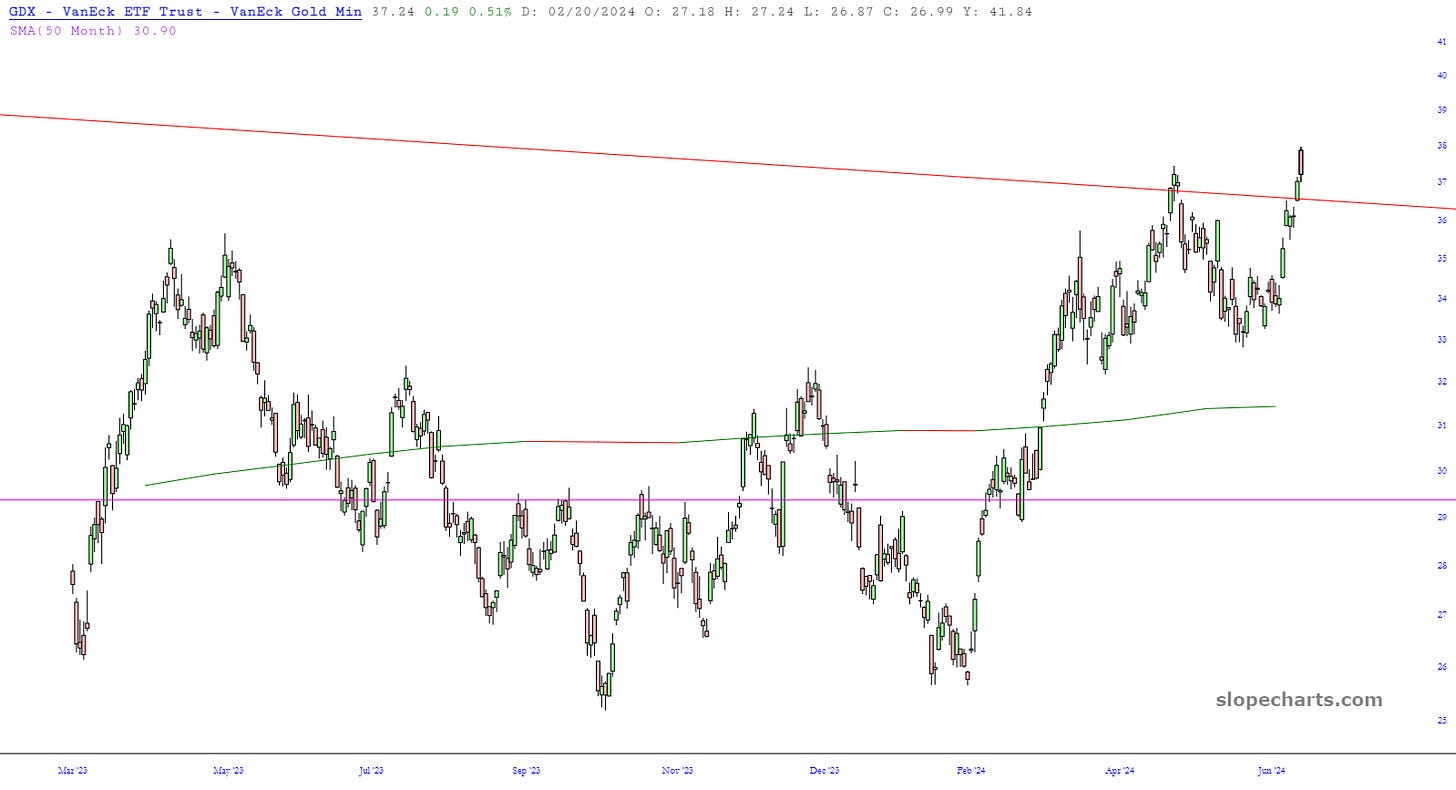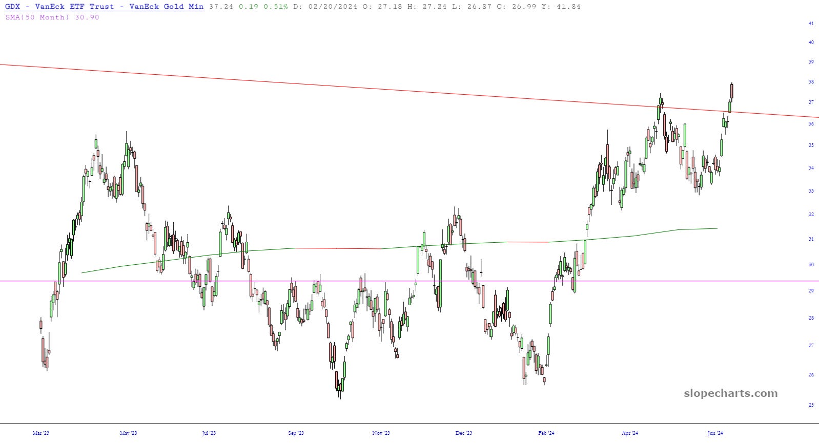 Similarly gold miners. If it goes below yesterday’s close, I consider this a potential failed breakout in the making.